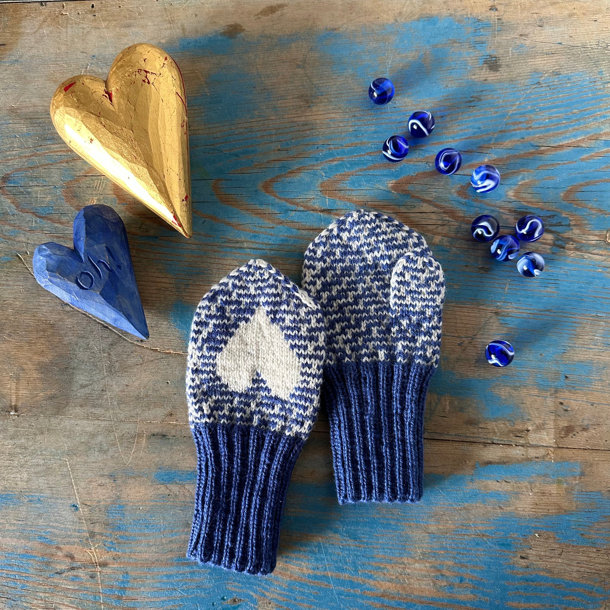 Disse søte vottene med hjertemotiv kan strikkes både med og uten tommel.