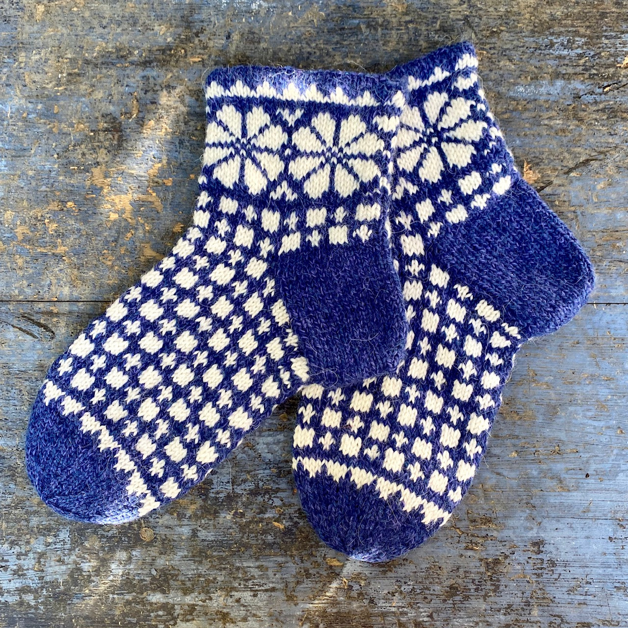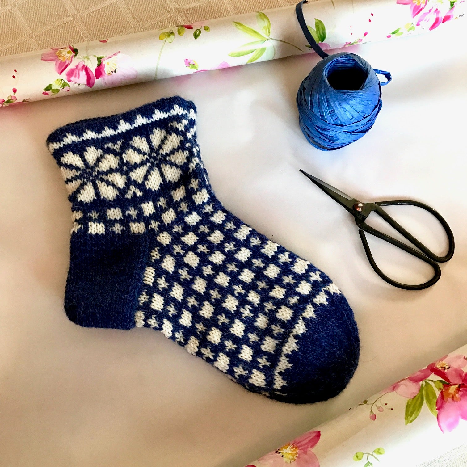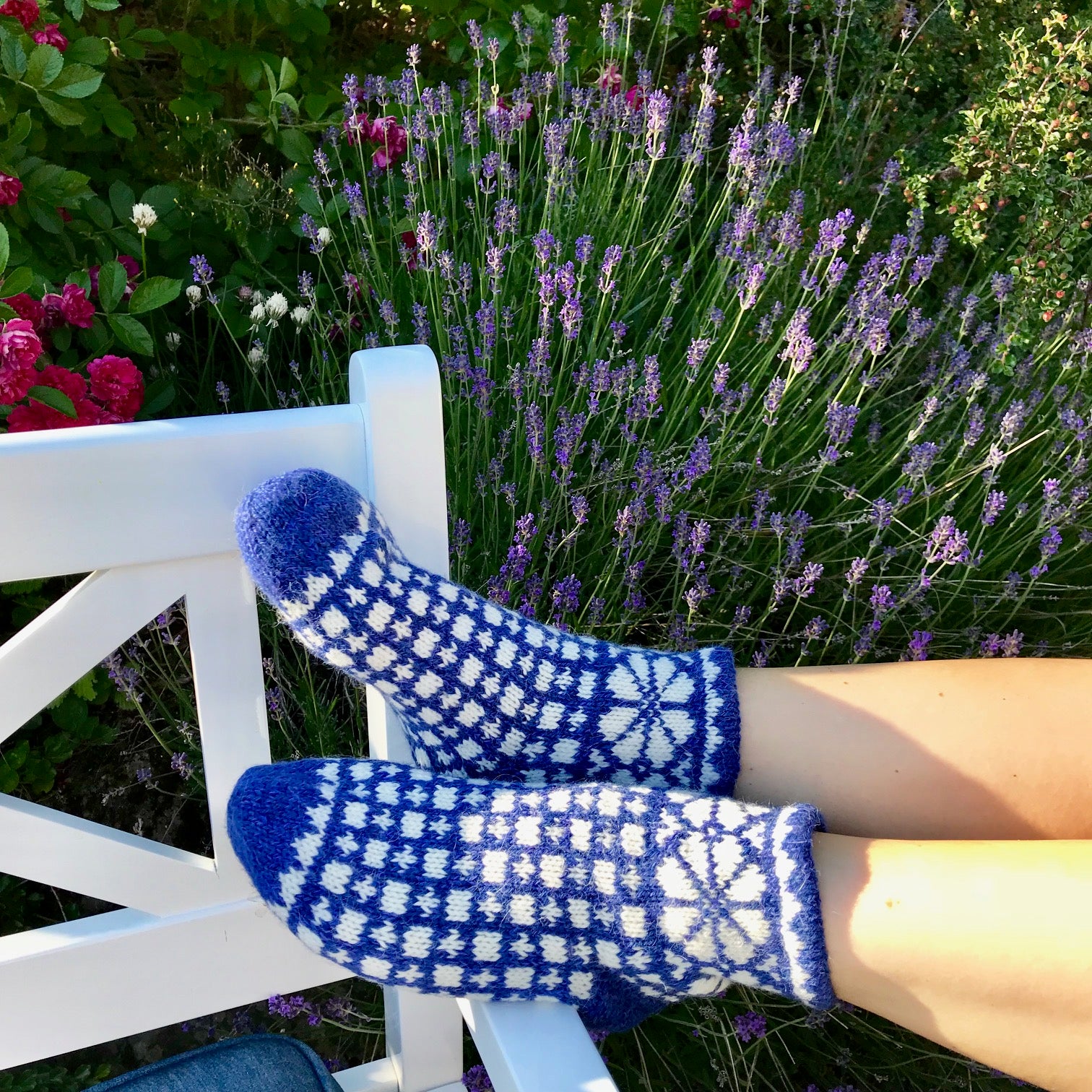 Hvis du vil strikke herresokker i det samme mønsteret, velger du et litt tykkere garn og pinner nummer 3,5 eller 4. Gå frem som beskrevet. Beregn litt mer garn.